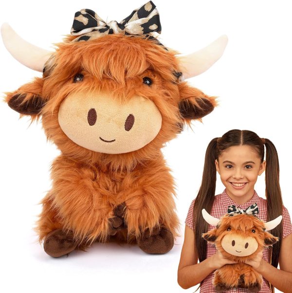 HOUDI 7.87 Inch Brown Highland Cattle Doll with a Leopard Print Headband